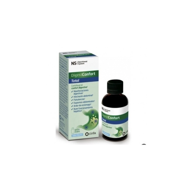 Descripción: NS DigestConfort Total Gotas 20 ml Sabor Neutro es un compuesto concentrado de extractos vegetales seleccionados para mejorar los síntomas digestivos como hinchazón abdominal, flatulencias, ardor de estómago y digestiones pesadas. Además, contribuye al buen funcionamiento hepático.