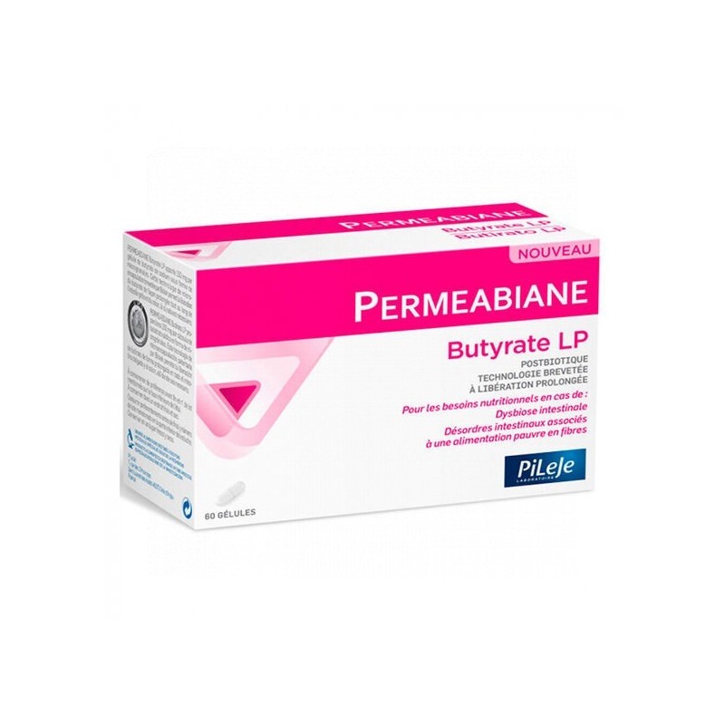 Permeabiane Butirato Lp de Pileje es un suplemento en cápsulas formulado para mejorar la permeabilidad intestinal en niños. Contiene butirato, un ácido graso que fortalece la barrera intestinal y promueve un equilibrio digestivo saludable.