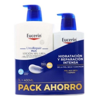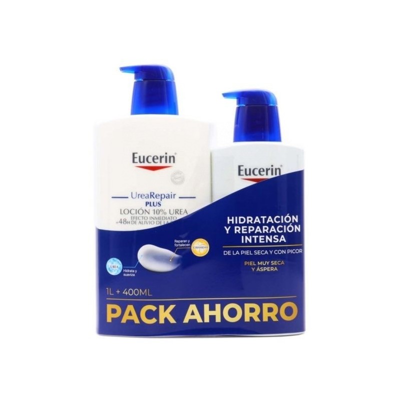 La loción Eucerin UreaRepair PLUS con un 10% de urea proporciona un cuidado diario esencial para la piel extremadamente seca, con picor y escamosa. Esta fórmula clínicamente probada ofrece un alivio inmediato y una hidratación intensa, retrasando la aparición de síntomas de piel muy seca y extremadamente seca incluso hasta por 48 horas. Deja la piel suave y flexible, adaptándose perfectamente a quienes sufren de xerosis, diabetes, psoriasis y queratosis pilaris (piel de gallina), así como para el cuidado complementario de la piel madura.